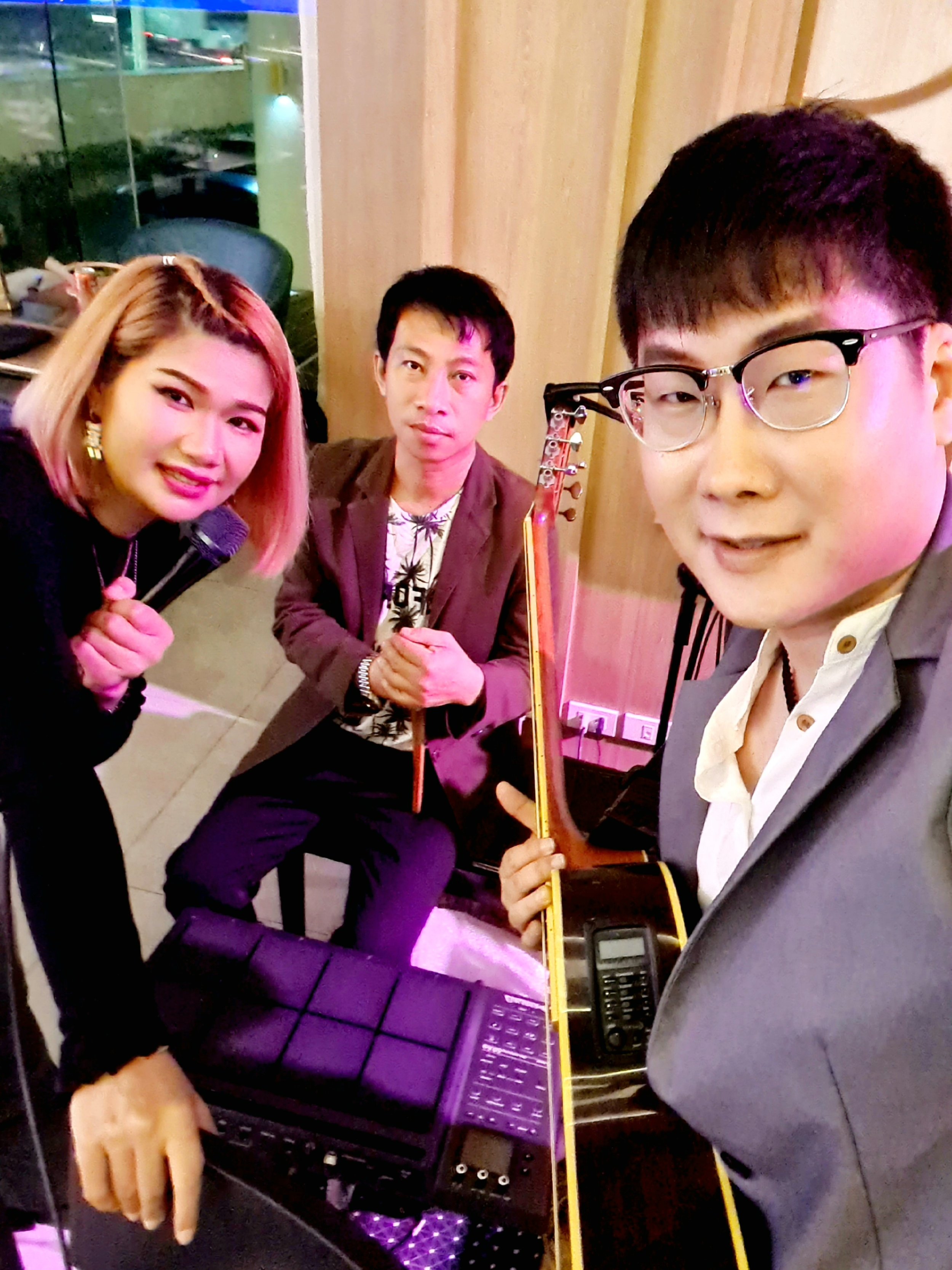 นักดนตรี 3 ท่าน (นักร้อง, นักกีตาร์, มือเพอร์คัชชัน/คาฮอง)